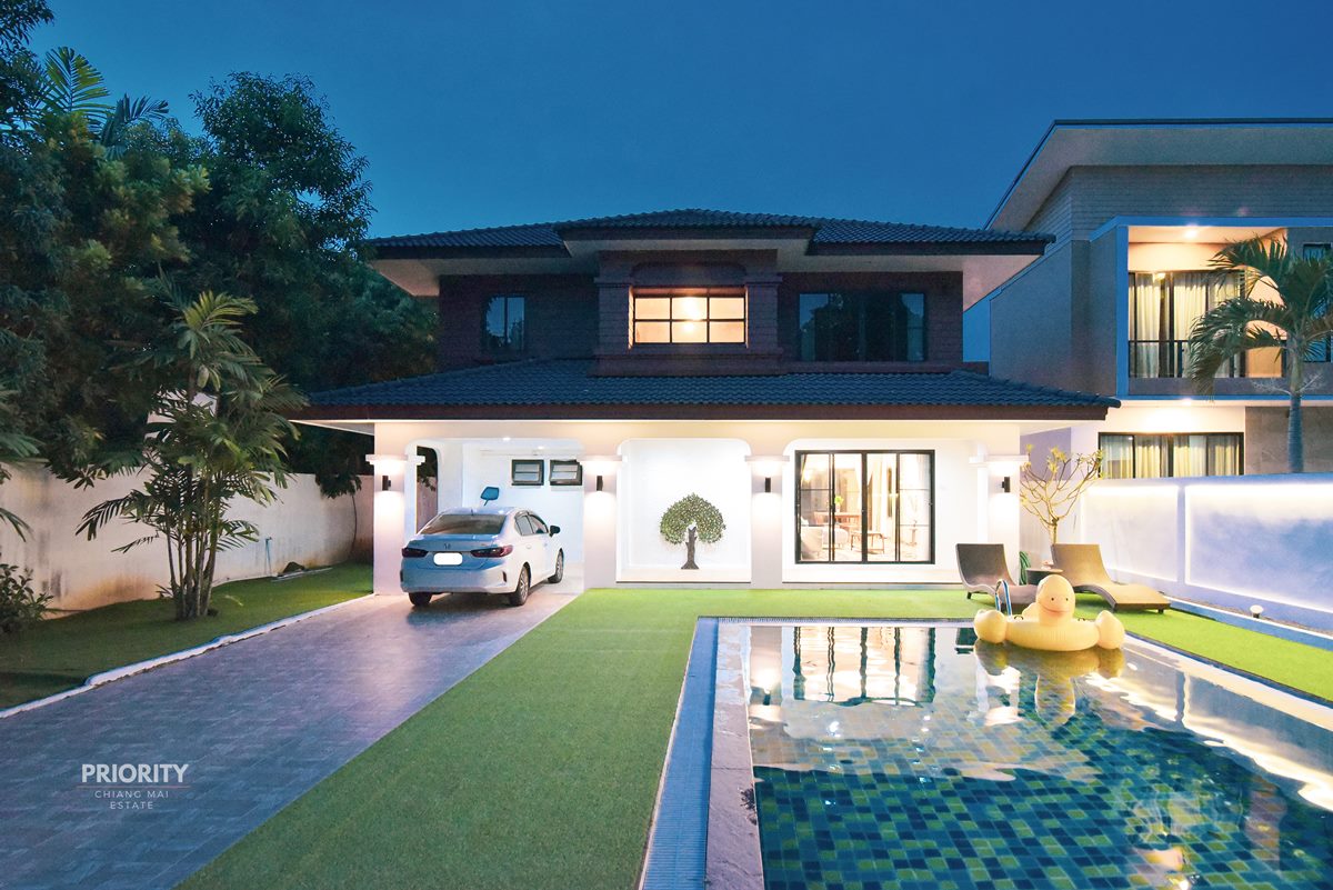 ให้เช่าบ้าน 2 ชั้น (4 ห้องนอน 4 ห้องน้ำ 1 ห้องอเนกประสงค์ 1 ห้องรับแขก 1 ครัวฝรั่ง พร้อมสระว่ายน้ำส่วนตัว)